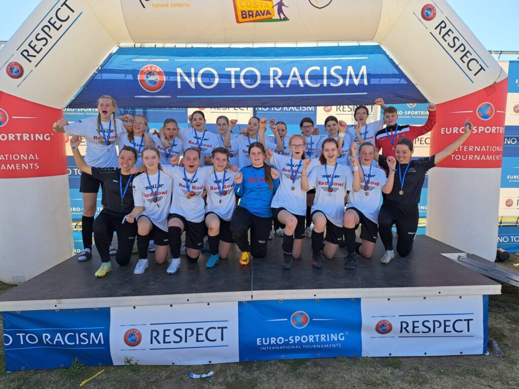 Wohlbehalten und mit vielen Erfahrungen kehrten die B- und C-Juniorinnen des MFFC Soest am Karfreitag von einem internationalen Fußballturnier in Spanien zurück. Sie nahmen am Copa Costa Brava in Malgrat de Mar teil. Nach einer Eröffnungsfeier in der kommunalen Sporthalle von Blanes bekamen es die B-Mädchen mit einer sehr schweren Vorrundengruppe zu tun. Neben zwei deutschen Regionalligisten wurde ihnen auch das Team eines englischen Fußball-Eliteinternats – die späteren Turniersiegerinnen – und eine dänische Spitzenmannschaft zugelost. Obwohl sich die MFFClerinnen in jedem Spiel nach Kräften wehrten, konnten sie letztlich kein Spiel für sich entscheiden. Dennoch konnten sie zahlreiche Lehren ziehen, die sie in den Spielen auch direkt anwenden konnten. Besser lief es für die C-Juniorinnen. Sie konnten zwei der drei Vorrundenspiele gewinnen und spielten damit in der Endrunde um die Platz 4 bis 6. Leider gab es hier dann zwei knappe Niederlagen, sodass am Ende Platz 6 für sie heraussprang. In der Freizeit standen für die beiden MFFC-Mannschaften bei schönstem Frühlingswetter Chillen am Hotelpool, sportliche Aktionen am Strand der Costa Brava sowie ein Besuch der katalanischen Metropole Barcelona auf dem Programm. Hier wurde unter anderem das Stadion Camp Nou und die Flaniermeile Las Ramblas besucht.