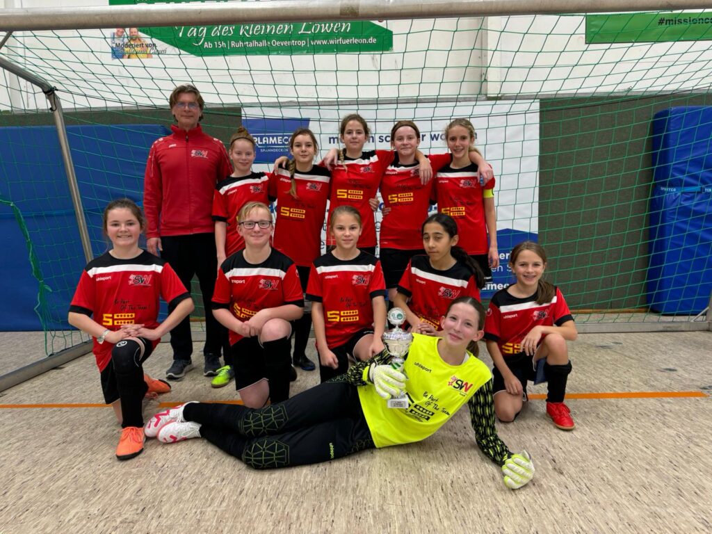 Im ersten Spiel gegen den Tus Vosswinkel waren die Mädels sofort hellwach und gewannen dank einer starken Leistung verdient mit 2:0. Das zweite Spiel gegen den SC Lippstadt endete leider torlos, obwohl die Mannschaft alles gab. Im dritten Match trafen die Mädels auf den Werner SC und gewannen hochverdient mit 1:0, wobei die Torhüterin des Gegners mit starken Paraden einen höheren Sieg verhinderte.