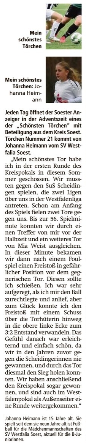 In der nächsten Runde wartet nun Sus Störmede als Gastgeber auf die Soesterinnen.