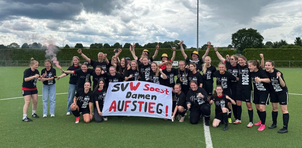 Die Damen verabschieden sich mit einem Sieg in die Sommerpause. Mit 2:1 gewannen sie beim Tabellenletzten und Absteiger TuS Ennepe. Schon nach 10 Minuten stand das Endergebnis fest. Praktisch mit dem ersten Angriff gingen die Gastgeberinnen in Führung. Doch die Soester Antwort kam prompt. Julia Wilczynska glich im Gegenzug mit einem Schuss aus 16 Metern aus. Kurz danach scheiterte Kyana Neumann zunächst noch an der Torhüterin, doch Krissi Dohle stand goldrichtig und staubte zur 2:1-Führung ab. Danach ließen unsere Damen bis zur Halbzeit einige klare Chancen liegen. In der zweiten Hälfte kamen auch die Gastgeberinnen noch zu einigen Möglichkeiten, doch unser Torhüter Jona Schmöle ließ keinen weiteren Treffer zu. Damit beschließt die Mannschaft des Trainerteams Christoph Brune und Carsten Hesse seine erste Bezirksliga-Saison auf dem 9. Platz.