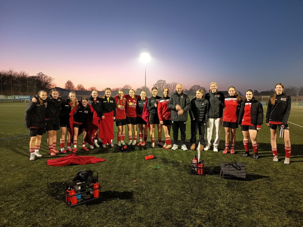 In einer wahren Schlammschlacht beim Kreisligisten SuS Störmede zeigten unsere Damen gestern vollen Kampfgeist und Teamspirit. Trotz schwieriger Platzverhältnisse ließen sie sich nicht vom Ziel abbringen und belohnten sich mit einem starken 5:1. Dabei kam es dem Team zugute, dass Kyana Neumann schon nach zwei Minuten die Führung erzielte. Noch vor der Pause erhöhte sie zum 2:0. Bis zur 60. Minute trafen Finja Rullich und Dana Mantau zum 4:0, bevor Störmede den Ehrentreffer erzielte. Den Schlusspunkt setzte Johanna Heimann mit einem fulminanten Freistoß zum Endstand.