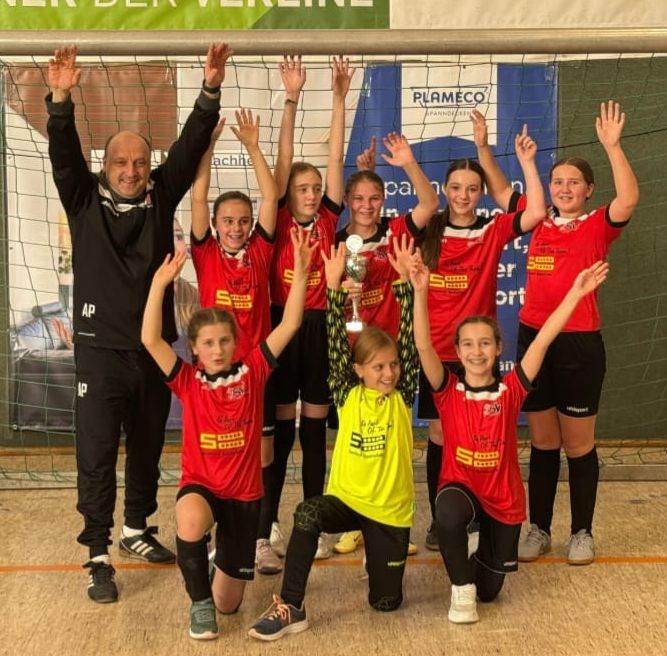 Die Hallenturniere in Oeventrop sind seit jeher beliebte Ziele unserer Mädchenmannschaften. Auch diesmal waren sie mehr als erfolgreich, denn sowohl die E- als auch die D-Juniorinnen gewannen ihre Wettkämpfe. Die E-Mädchen sicherten sich den Turniersieg, nachdem sie 4 von 5 Spielen gewannen. Auch die D-Mädchen gewannen ihre Altersklasse, nachdem sie bereits nach der Vorrunde in ihrer Gruppe auf Platz 1 lagen und dann sowohl das Halbfinale als auch das Finale gegen den SV Berghofen gewannen. Dementsprechend zufrieden waren natürlich die beiden Trainerteams um Vitali Hartmann (E) und Andi Pensel (D).
